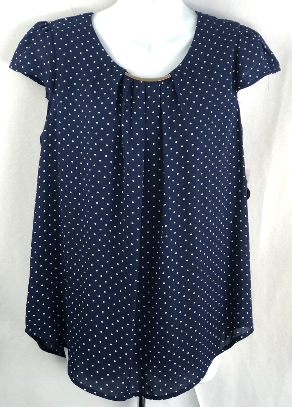 NWT AUW Babydoll Top M Blue Polka Dot Puff Cap Sleeves Charm Round Neck Hi-Low Chest 38" (19" underarm seam to seam) Length 24" Fast shipping , same or next business day with tracking number for confirmation Thank You Questions? Please let me know I answer questions promptly Have a great day! WalkupandDeal offers great deals on previously loved items....... We inspect each garment for any flaws the item may have: missing buttons,holes,spots,tears or pilling. Our suppliers are carefully selected, so we only offer items that are in Great with minimal wear ,excellent,nearly new or New with tags condition. Information on each item can be found in the "item specifics" tab, including: Size, measurements,fabric content and care instructions. Our faculty is a non smoking environment and each item is laundered & steamed prior to listing and shipping. We strive for every customer to be happy with their items and as always offer a "return for any reason" policy...... ..... Thank you for shopping with us!!!