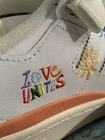 Elevate your sneaker game with these NWT Adidas Kris Andrew Small Pride Love Unites Sneakers. These limited edition sneakers feature an adjustable ankle strap, lace-up closure, and a multicolored design with the Love Unites theme. The upper is made of high-quality leather and the outsole is made of durable rubber, making them perfect for gym and training, cross-training, running, and jogging. These sneakers are a must-have for any Adidas fan and come in a size 8.5 US, 42 EU, and 8 UK. They are part of the Love Unites product line and were manufactured in 2021 in China. The sneakers are not customized and are not vintage. The product is in the form of a unit and is suitable for men and women, alike. Excellent unworn condition with no major flaws or issues. Tags attached, original laces, no original box. No refunds or returns. Sales are AS IS and Final