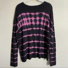 A luxe cashmere sweater gets the tie-dye treatment to add a laid-back note to the traditionally luxe look. Crewneck. Long sleeves. Ribbed collar, cuffs, and hem. Black color with horizontal pink tie-dye stripes. **PLEASE NOTE: This sweater is intentionally brushed with pills for a lived-in rustic look! SEE PICTURES!** Color: Washed Tie Dye Black Size Medium Measures Flat Approximately: 21" Pit to Pit, 25" Long 98% Cashmere / 2% Elastane Dry Clean **BRAND NEW! WITH TAG!**