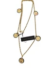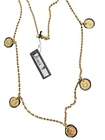 This Anne Klein necklace is the perfect addition to your jewelry collection. It features navy coins with a brushed gold tone metal, giving it a stylish and chic look. The chunky style adds a touch of glamour to any outfit, making it a great accessory for any occasion.