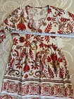I was really happy the seller accepted my offer. This colorful cotton blouse was shipped promptly, and carefully packaged in tissue and a shipping envelope. It is even prettier than the pictures posted on the seller's site described. The cotton is soft, the colors like new. The final price was a good value for such a nice top.
