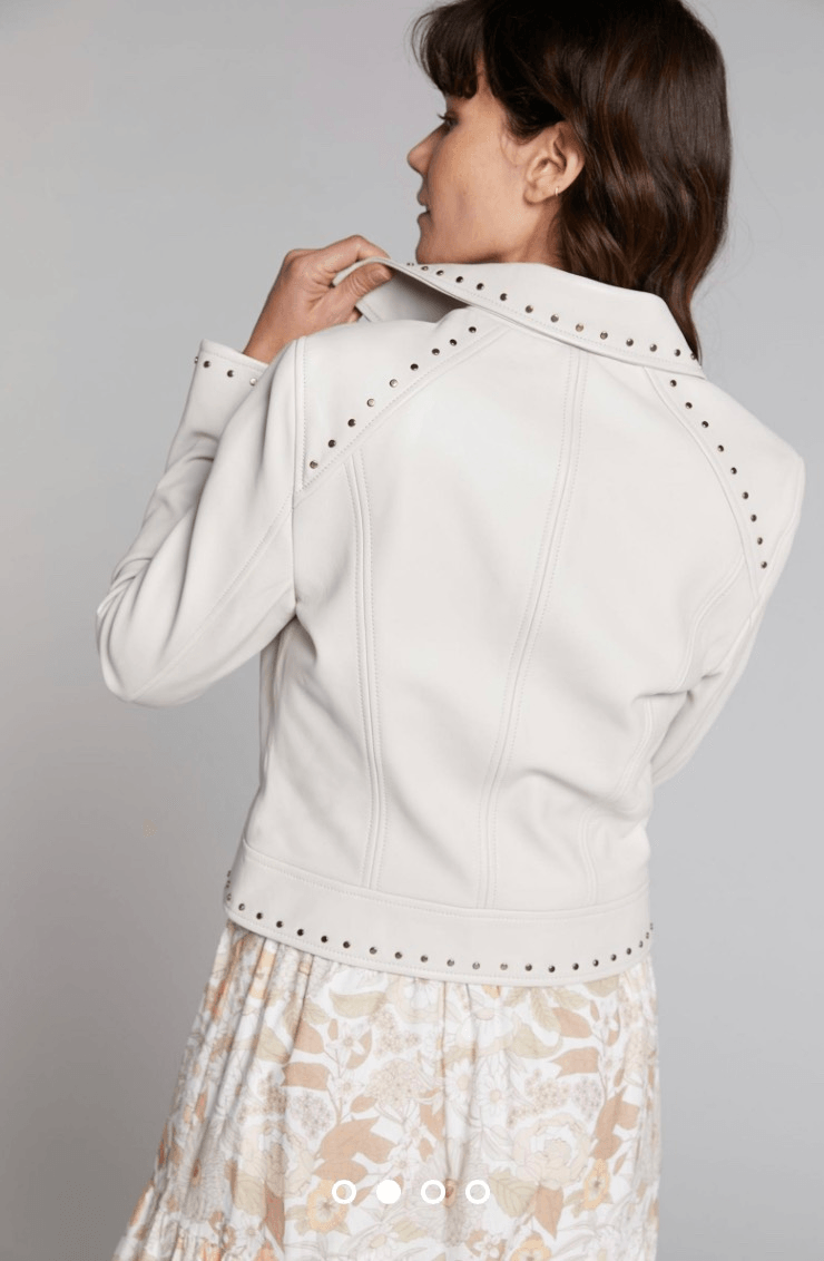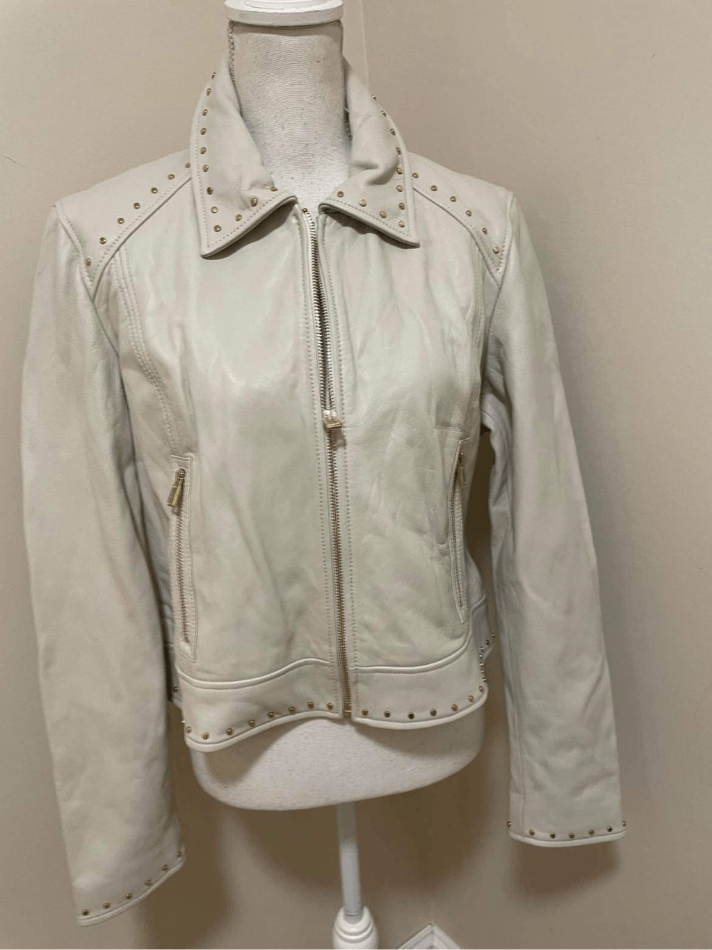 With studded embellishments for plenty of edgy flair, this sumptuous leather layer makes a fabulous topper for spring-ready dresses and flats. About Lamarque Montreal-based fashion house Lamarque has a heritage rooted in high-quality leather, with each piece striking a balance between emblematic edginess and timeless sophistication. The company's hallmark moto jacket is constantly reinvented with new details and finishing touches, but never loses its thoroughly modern sleekness and versatile silhouette. * 100% leather; polyester, spandex lining * Studded embellishment * Side zip pockets * Cropped hem * Zip front * Dry clean * Imported Dimensions * 20.25"L Brand new items 100% Authentic Line through Name tags (Inside tag) only done to prevent store returns UP