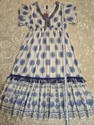 The NWT Anthropologie Me 2 Magic Metallic Tiered Boho Maxi Dress is a stylish and versatile piece perfect for various occasions. With a cowl neck and pullover closure, this long dress features a layered design and a vibrant blue color with gold metallic accents. Made from a lightweight and smocked fabric, this dress is ideal for summer, fall, and spring. The bohemian theme, combined with the flatters' sleeves and tiered design, adds a touch of flair to this trendy maxi dress, designed for women by the Me 2 Magic brand. New With Tags Shell : Viscose Lining : Cotton Hand Wash Cold Super cute and elegant Stretch Gorgeous dress Please see photos for measurements and details :)