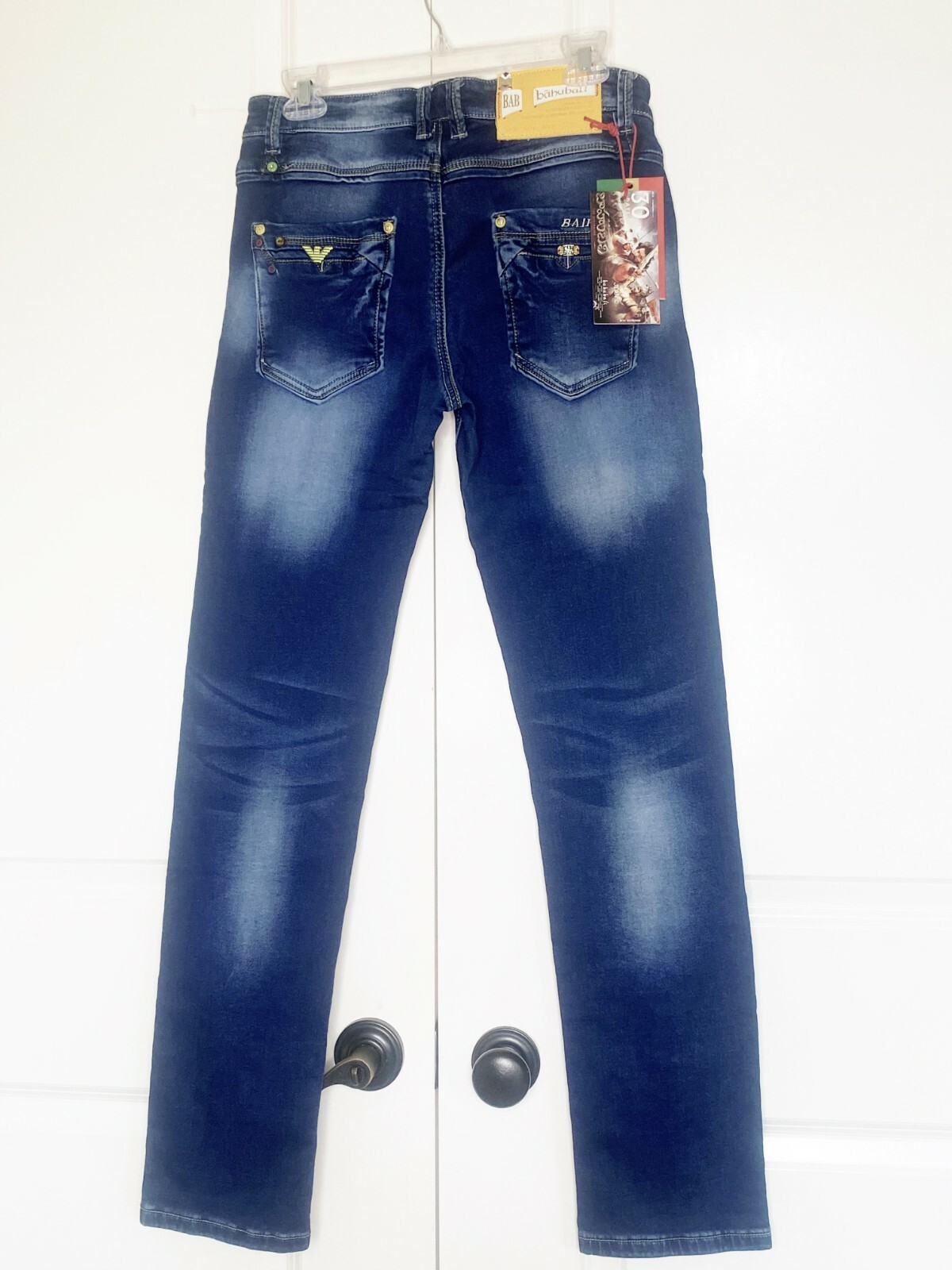 These jeans are amazing! The distressed blue color looks so stylish, and the stud embellishments add a cool edge. They fit perfectly—comfy stretchy cotton with a straight leg that flatters. The waist and inseam measurements are spot-on, making them true to size. Love the regular fit—not too tight or loose. Such great quality at this price! Definitely worth buying.