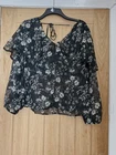 This NWT black floral chiffon blouse from Next in size 14 features a V-neckline, long balloon sleeves, and a button closure. The blouse is made from polyester chiffon fabric and is adorned with ruffle accents, giving it a feminine and elegant look. With a relaxed fit and suitable for various occasions including travel, weddings, parties, and workwear, this blouse is perfect for the spring, summer, autumn, and winter seasons. The floral pattern and theme of love add a touch of romance to this stylish and versatile tunic-style top. Length is 23"