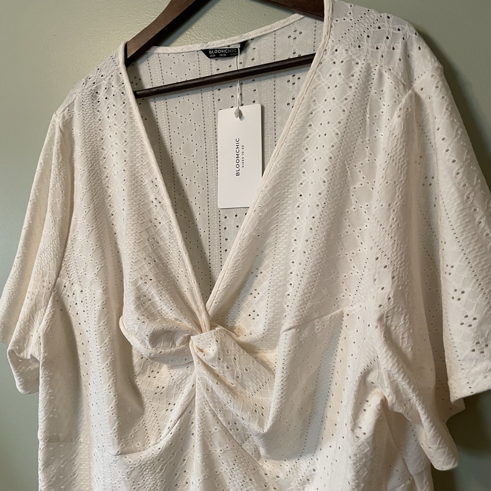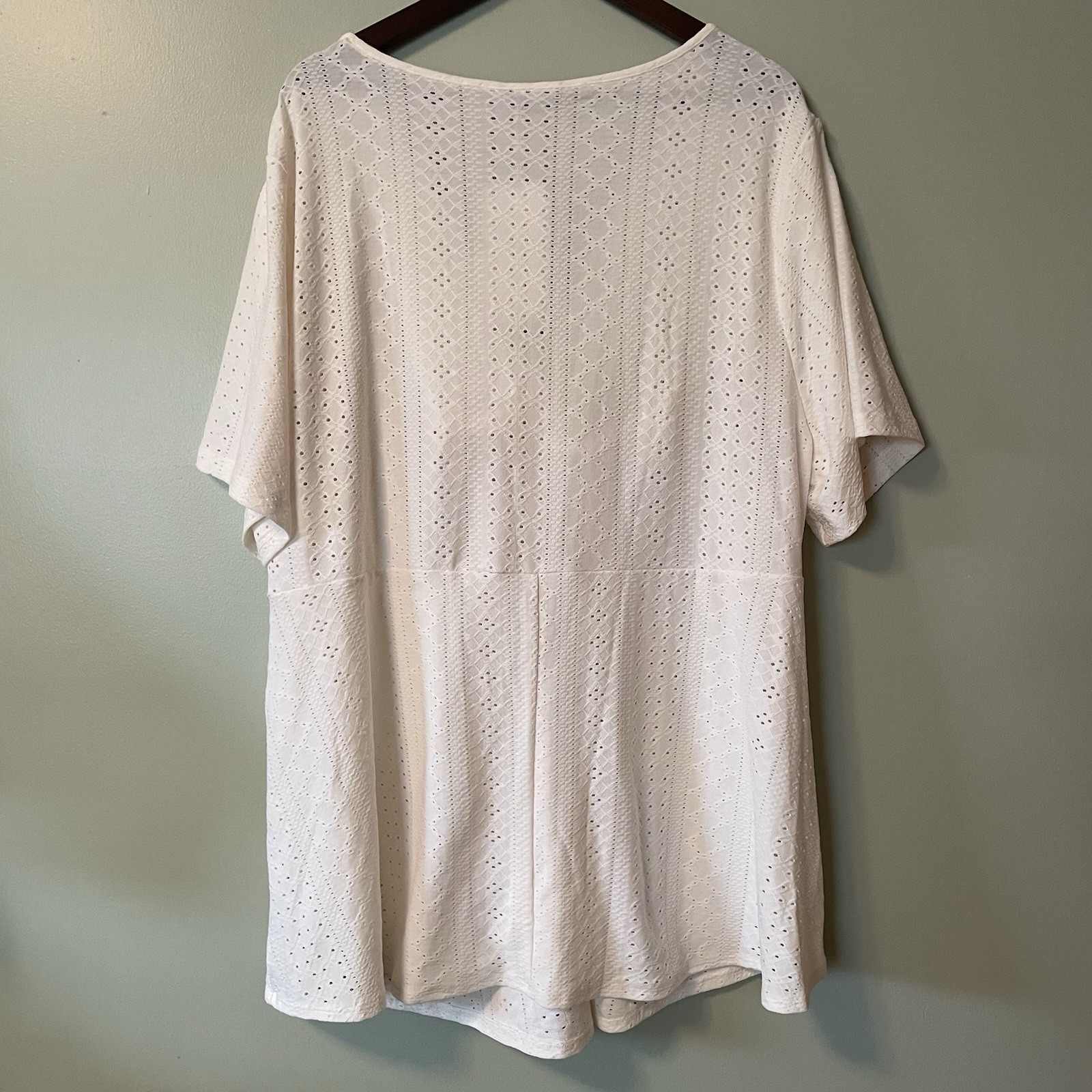 Excellent Pre-Owned Condition (see pics for details & measurements) Size: women’s plus size 26 Features: • Style Profile: boho , casual, ivory, eyelet, lace, twist front, tunic, stylish, career, work wear • Flaws: No Holes, stains, or tears • I am happy to answer your questions! • Washing Instructions: hand washing is recommend Super Fast Shipping: I ship out the next business day! A12