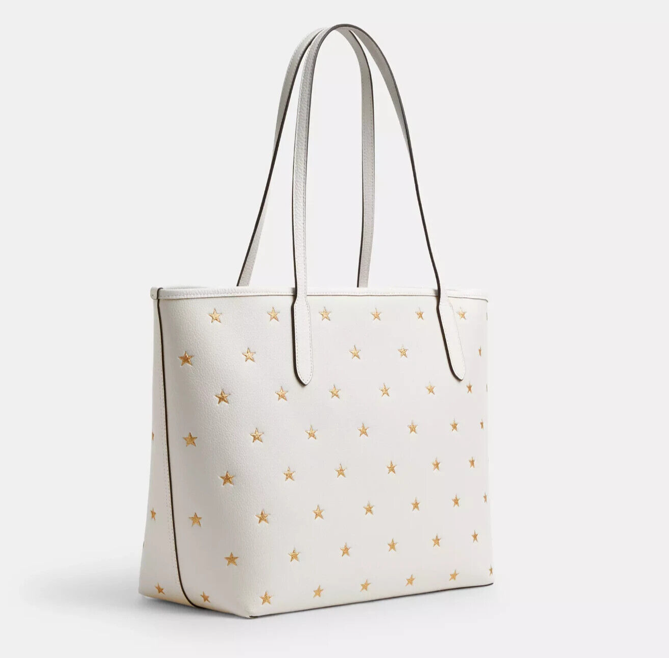 $ 105.6Red Coach Tote with Side Pocket and Chain Detail