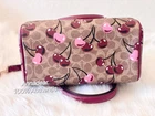 NWT COACH Rowan Satchel Bag In Signature Canvas With Cherry Print CY692 Limited Edition Style Number CY692 Measurements Length: 10.0" Height: 6.5" Width: 5.5" Materials Signature coated canvas Fabric lining Handle Handles with 4.25" drop Strap Detachable strap with 23" drop for shoulder or crossbody wear Features Outside zip pocket Inside zip and multifunction pockets Zip closure