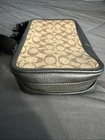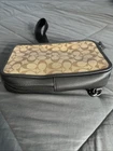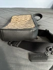 Crafted for the modern professional, the Coach Sullivan Pack C9865 combines sophistication with functionality. This medium-sized crossbody/sling pack in an elegant Khaki/Charcoal color scheme boasts a signature coated canvas and refined pebble leather exterior, complemented by metal and leather hangtags. The interior is lined with a brown polyester fabric, providing a durable and stylish home for your essentials. The pack features a secure zip closure, a spacious 10.75" height, 6.75" width, and 2.25" depth, ensuring enough room for your daily necessities. The black antique nickel high-quality metal hardware adds a touch of class, while the adjustable nylon crossbody strap, ranging from approximately 14" to 25", offers versatile wearability. Designed for a variety of occasions, from business meetings to casual outings, it's a seamless blend of designer style and practicality.