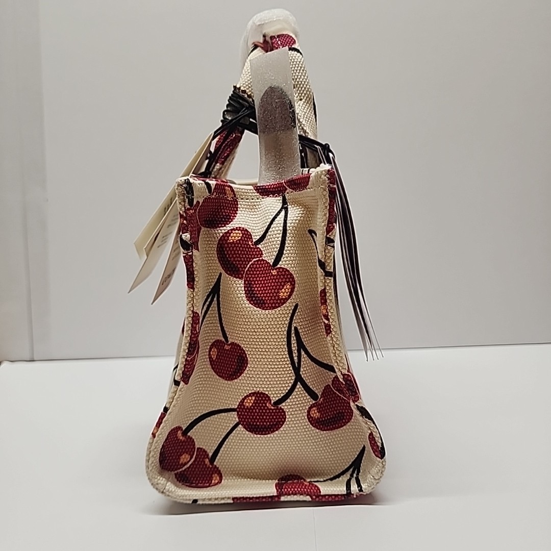 The NWT COACH Woman's Handbags Cargo Tote Bag 20 with Cherry Print CZ104 is a stylish and versatile crossbody bag designed for women. Featuring a multicolor exterior with a bold cherry print, this bag is made from a combination of materials to ensure durability and functionality. The design of the bag offers both fashion and practicality, making it a perfect accessory for any outfit or occasion. The Coach brand is known for its quality craftsmanship and this tote bag is no exception, offering a timeless and trendy piece for any woman's wardrobe. Measures 7.75Lx6"Hx4.25W