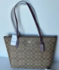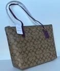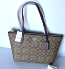 COACH 4455 Zip Top Tote Shoulder Bag Signature Canvas & Leather in Khaki/Deep Berry Multi MSRP $298 Product Details: Signature coated canvas and smooth leather Inside cell phone and multifunction pockets Zip-top closure, fabric lining Handles with 10" drop 11 1/2" (L) x 9 1/2" (H) x 4 1/2" (W) Style No. 4455 This bag does NOT come with a dust bag 👉Please review all photos, dimensions and descriptions thoroughly before your purchase.👈 Thank you! Please feel free to contact me if you have any question about this product before your purchase! I respond very soon. *Please note that the color in pictures might differ slightly due to lighting, flash and screen resolution. From very clean, Pet and smoke free household!