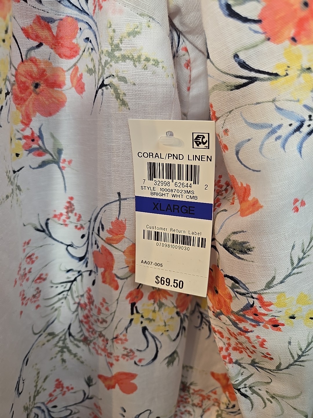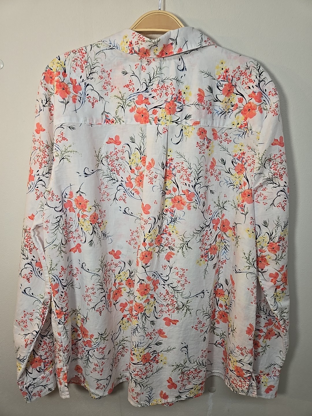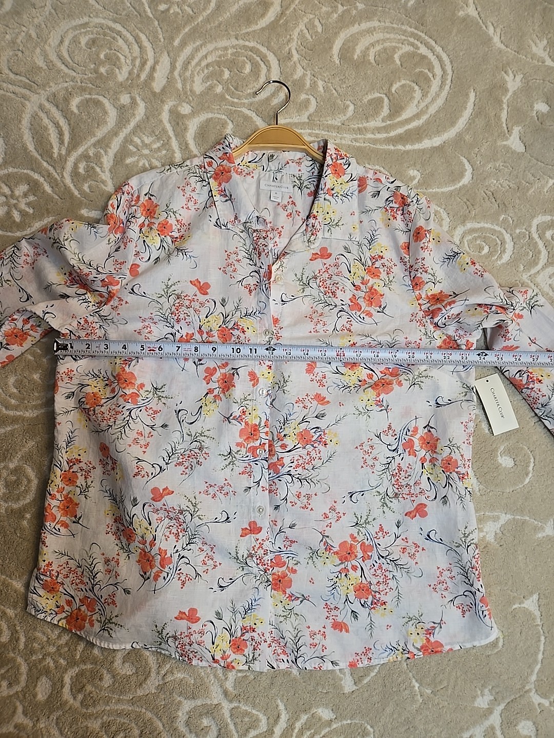 This NWT Charter Club Linen Blend Floral Top Blouse in size XL features a beautiful floral pattern in a multicolor design, making it perfect for various occasions such as travel, casual outings, and business meetings. The blouse has long sleeves that can be worn as roll tabs for a versatile look. It also has a collared neckline, button closure, and is machine washable for easy care. Made from a lightweight and breathable linen blend, this blouse is ideal for all seasons and can be styled in a classic and colorful manner, reflecting the basic yet stylish design of the Charter Club brand. New with tags 58% Linen, 42% Cotton Machine Wash Cold Roll tab sleeves Soft and lightweight High-quality Well made Please see photos for measurements and details :)