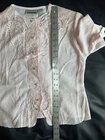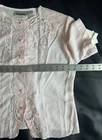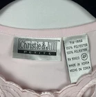 * Measurements displayed in photos. Please feel free to ask for additional pictures and measurements as well! * The NWT Christie & Jill Light Pink Embroidered Blouse with Pearl Buttons is a stylish and feminine top perfect for various occasions such as weddings, date nights, parties, and formal events. Made from polyester satin fabric, this blouse features a pretty floral pattern, short sleeves, and a round neck with button closure. The pearl buttons and embroidered accents add a touch of elegance, while the soft pink color and girly theme make it a charming choice for petites in size 4P. With its classic fit and breathable design, this blouse is a versatile and chic addition to any wardrobe.