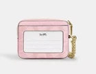 NWT Coach Zip Card Case In Signature Canvas CW883 Color: POWDER PINK Brand new with tags 100% Authentic Style Number: CW883 Measurements Length: 3.0" Height: 4.25" Width: 0.75" Materials Signature coated canvas Strap Chain wrist strap with dogleash clip attached Features Open pocket Two credit card slots Zip compartment Chain wrist strap with dogleash clip attached ID window Price is firm