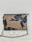 NWT Coach CY746 Slim Crossbody Bag In Signature Canvas With Bow Print Color: Tan Black multi Details: Signature coated canvas Fabric lining Two credit card slots Zip-top closure Chain strap with 22.5" drop for shoulder or crossbody wear Length: 7.75" Height: 5.5" Width: 1.25" IN SMOKE FREE HOME!! ALL ITEMS ARE GUARANTEED 100% AUTHENTIC and BRAND NEW ! *Please note that the color in pictures might differ slightly due to lighting, flash and screen resolution. Thank you for viewing and please check my other eBay store items!