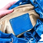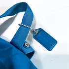 NWT Coach Dark Plume Blue Getaway Signature Nylon Backpack F77350 New with tags Lightweight and packable. Drawstring and button closure. Measures to be about 13 x 10 x 6 inches Has adjustable straps.
