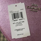 Silver/Metallic Lilac Style Number CP020 Measurements Length: 6.0" Height: 7.0" Width: 2.5" Materials Metallic crossgrain leather Fabric lining Handle Top handle with 2" drop Strap Detachable strap with 22.5" drop for shoulder or crossbody wear Features Double zip closure Two credit card slots Bestseller will come wrapped with all original Coach wrappings