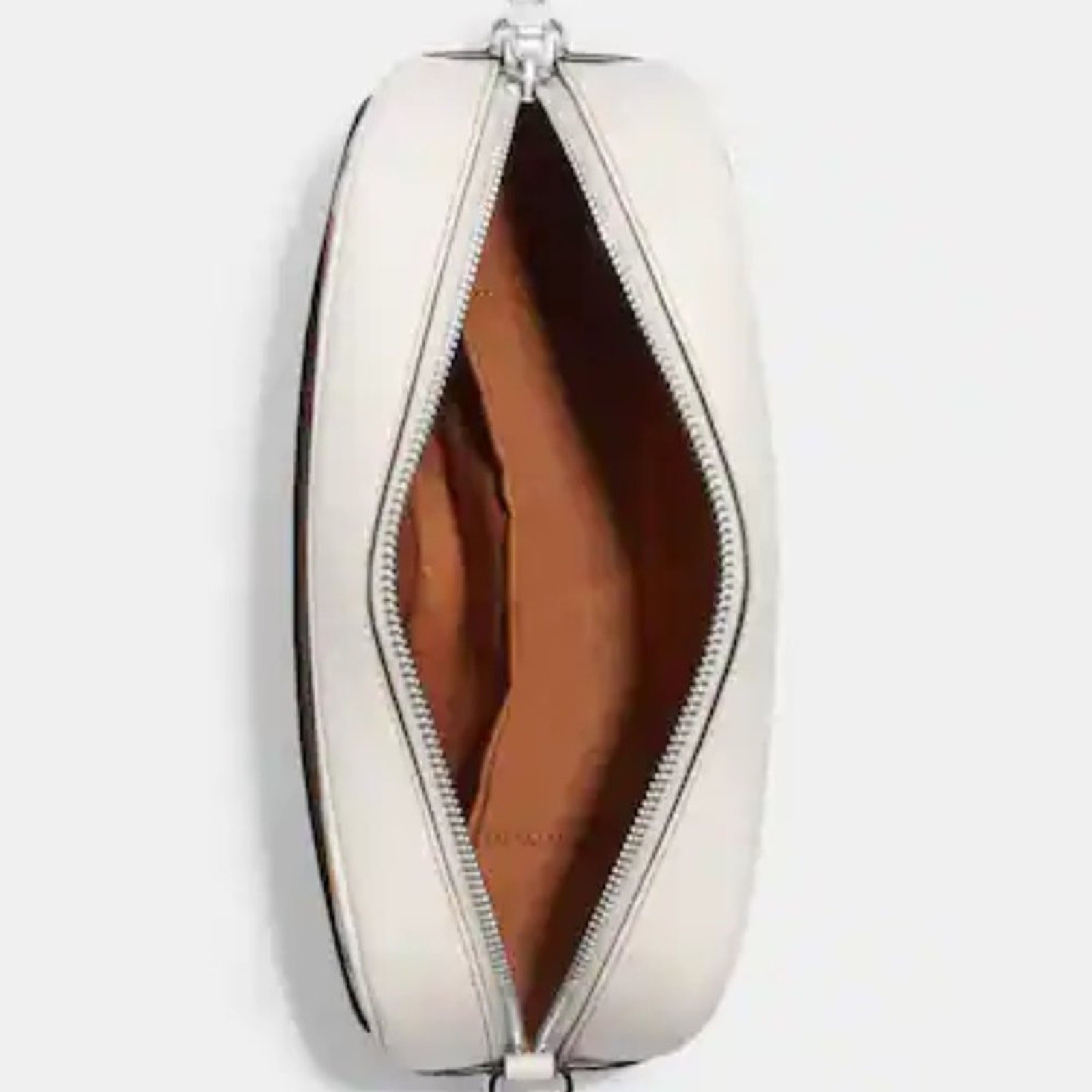 Silver/Chalk Multi Signature coated canvas and smooth leather Inside multifunction pocket Zip closure, fabric lining Outside open pocket Detachable strap with 21 3/4" drop for shoulder or crossbody wear 9 1/2" (L) x 6 1/4" (H) x 2 3/4" (W) Style No. CA175