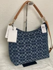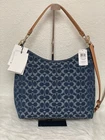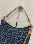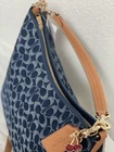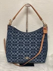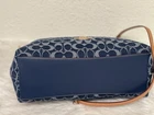 Coach Large Laurel Shoulder Bag In Signature Denim CY697 NWT 100% authentic, buy directly from Coach Color: denim Style Number: CY697 Measurements Length: 14.25" Height: 12.0" Width: 5.0" Materials Signature denim and vachetta leather Fabric lining Handle Detachable handle with 8 .5" drop Strap Detachable strap with 21.75" drop for shoulder or crossbody wear Features Inside zip and snap pockets Zip-top closure Price is firm