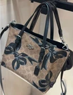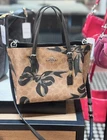 NWT Coach Mollie Tote Bag 25 In Signature Canvas With Bow Print CZ767 Tan/Black 100% Authentic Style Number CZ767 Color: Tan/ Black multi Measurements Length: 9.75" Height: 7.5" Width: 4.75" Materials Signature coated canvas Fabric lining Handle Handles with 4.75" drop Strap Detachable strap with 22" drop for shoulder or crossbody wear Features Zip-top closure Side open compartments Packaging may vary