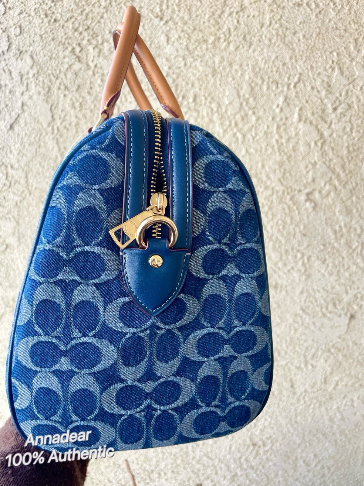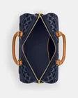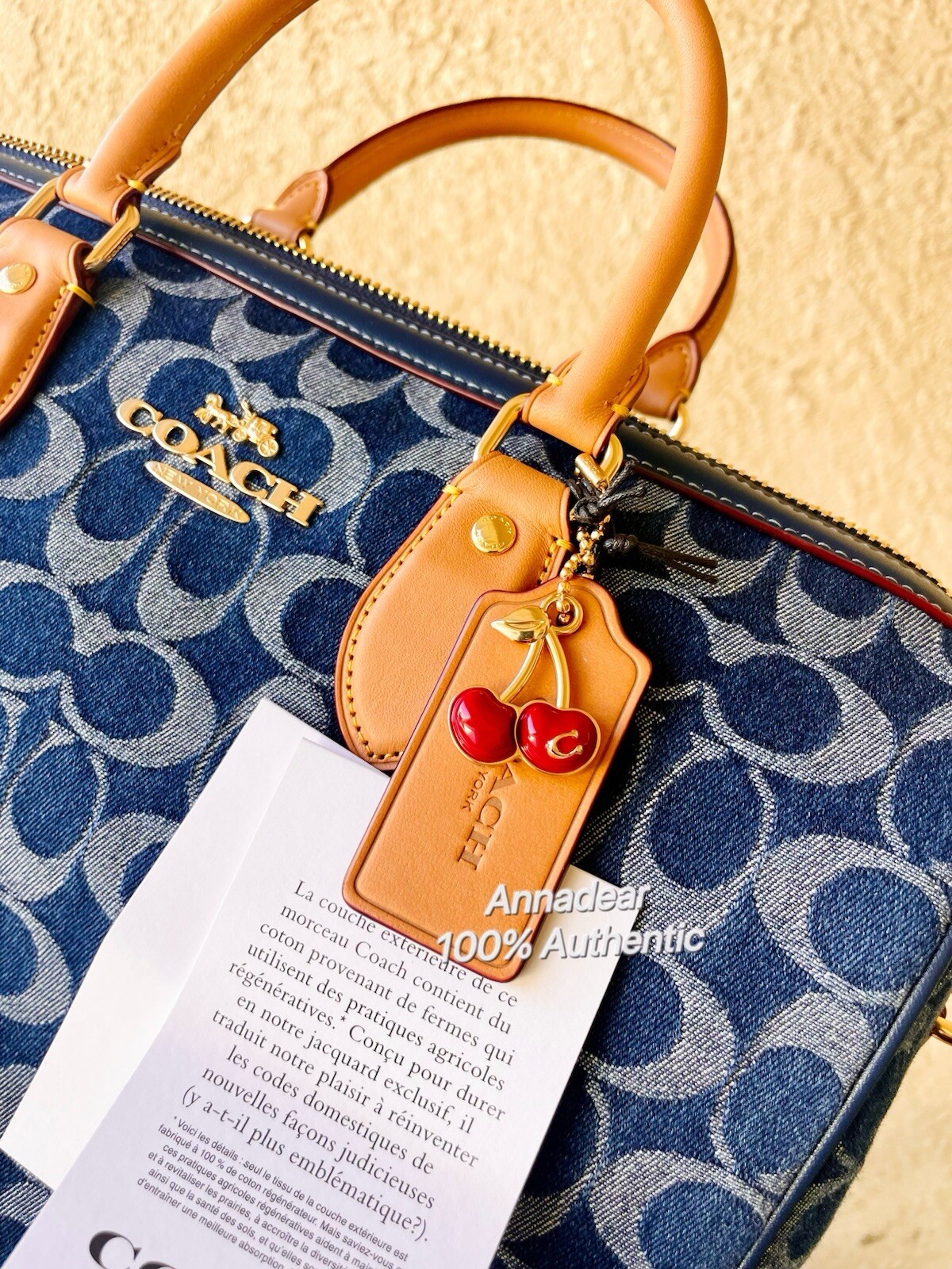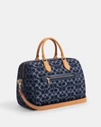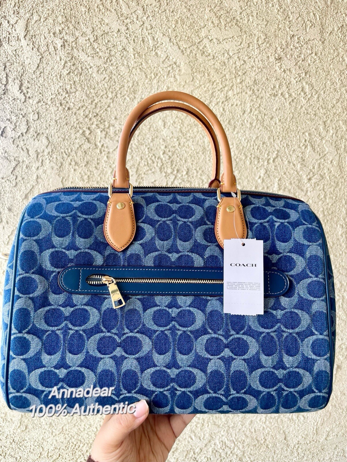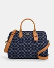 Coach Rowan Large Satchel Bag In Signature Denim Canvas Brand new with tags 100% Authentic Limited Edition Style Number CY699 Measurements Length: 11.75" Height: 8.25" Width: 7.0" Materials Signature denim and vachetta leather Fabric lining Handle Handle with 4.5" drop Strap Detachable strap with 20" drop for shoulder or crossbody wear Features Outside zip pocket Inside snap and zip pockets Zip closure Additional Details Exclusive of trim, this denim style is crafted of cotton sourced from farms that use regenerative agricultural practices—those that help to maintain and rejuvenate land, increase biological diversity and soil health and could lead to increased carbon absorption FSAT SHIPPING Price is firm