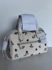 NWT Coach Rowan Satchel Bag Ivory Chalk Ladybug Floral Print CU272 Purse 100% Authentic Coach Coated Canvas Satchel Bag Gold Coach logo, Coach logo hangtag hanging on front Zip top closure Interior zip & slip pockets Back zip pocket Detachable strap with 23" drop Handle straps with 4.25" drop 10" W x 6.75" H x 5.5" D 👉Please review all photos, dimensions and descriptions thoroughly before your purchase.👈 Thank you! Please feel free to contact me if you have any question about this product before your purchase! I respond very soon. *Please note that the color in pictures might differ slightly due to lighting, flash and screen resolution. From very clean, Pet and smoke free household!
