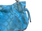 NWT Coach Signature Collection Blue Satin Handbag With Silver Hardware & Leather This elegant Coach Signature Collection handbag is crafted in blue satin, featuring striking silver hardware and leather accents. Its sophisticated design with the iconic Coach pattern embodies timeless style, making it an excellent choice for those who appreciate luxury and functionality. • Satin material with leather accents • Silver-tone hardware • Signature Coach pattern • Secure turn-lock closure • Dual chain and leather handles Your satisfaction is our main goal, so please reach out to us with any questions prior to your purchase. Offers are encouraged and welcome here on Butterfly Lane. I am happy to combine shipping! Additionally, all items come from a smoke-free, labrador-approved environment. If there is a problem with your order once received, please contact us first so we can make it right! We stand by our products and want your repeat business. Butterfly Lane is a new selling page, so we gratefully encourage you to help us grow by leaving feedback for us once your order is completed to your satisfaction. We want to see you again, so please let us know how we can be of service to you. Sincerely, Karol (aka superb_stuff) SKU: Amy 2