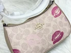 Coach Teri Mini Crossbody Bag In Signature Canvas With Lips Print Brand new with tags Come with original packaging Price is firm Confidence to shop! Guaranteed Authentic ~ Purchased directly from Coach! Product Details Style Number CZ943 Measurements Length: 7.75" Height: 5.0" Width: 2.25" Materials Signature coated canvas Fabric lining Strap Detachable short strap with 8.75" drop Detachable long strap with 22.5" drop for shoulder or crossbody wear Features Inside snap pocket Two credit card slots Zip-top closure Additional Details Trim partially made with recycled leather fiber layer *Please note that the color in pictures might differ slightly due to lighting, flash and screen resolution.