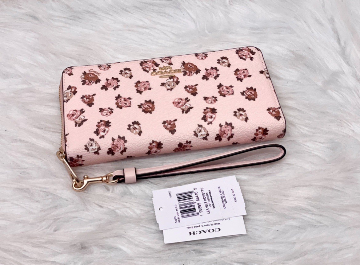 NWT Coach Long Zip Around Wallet With Rosette Print CZ329 Fast shipping Brand new never used 100% authentic Style Number: CZ329 Measurements Length: 7.5" Height: 4.0" Width: 1.0" Materials Printed coated canvas Strap Detachable wrist strap Features Inside zip coin pocket 12 credit card slots Double zip closure Full-length bill compartments Fits all iPhone and Samsung Galaxy phones