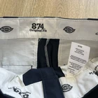 Crafted for durability and comfort, the Dickies Men's 874 Original Fit Twill Work Pants are a wardrobe essential for those who value both style and functionality. These pants feature a classic blue hue, a flat front design, and a combination button and zip closure for a secure and sleek fit. The size 30 waist with a 30-inch inseam ensures a comfortable fit for the regular build, while the slimming features contour to your shape for a polished look. Whether you're on the job or navigating the urban landscape, these pants are suited for various settings, from work to streetwear. Embodying the essence of American craftsmanship, they are also a practical choice for school uniforms. The solid pattern allows for versatile outfit combinations, making them a staple in your clothing collection.