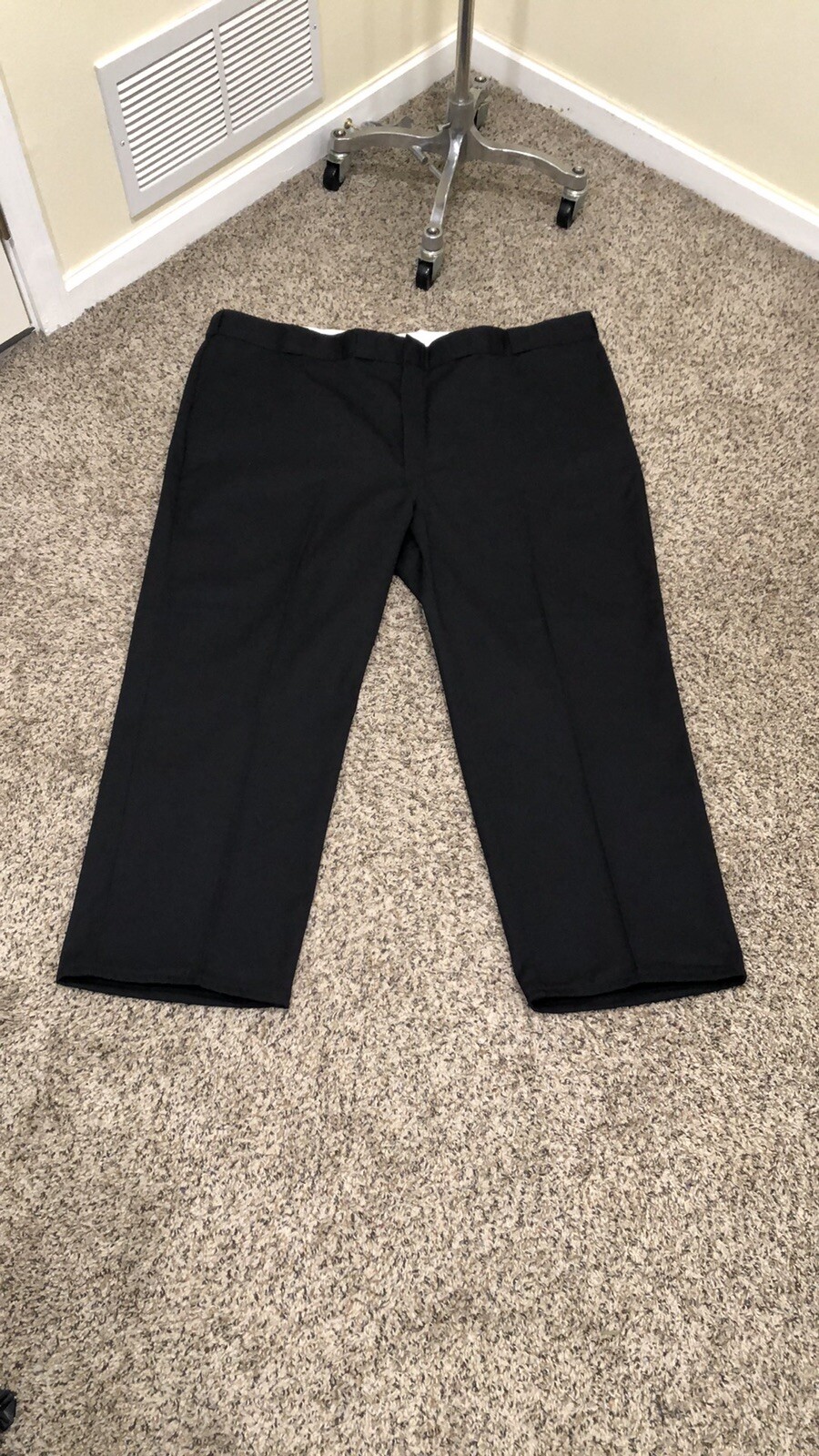 NWT Dickies Original 874 Industrial Work Pants Size 52 52x30” Black Pleat Front. New with tags no flaws. Pleated, flat front pocket, straight leg work pants. Black thick polyester and cotton blend. No stretch. 24oz