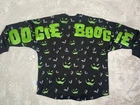 This is a rare and highly coveted Disney Parks Nightmare Before Christmas Oogie Boogie sweater! This black, long-sleeved shirt features the iconic character from the beloved movie and is a must-have for any fan. It's a size XL and fits regular men's sizes. This shirt is brand new with tags and is a perfect addition to any Disney collector's wardrobe. Get in on the holiday spirit with this unique and cozy piece.