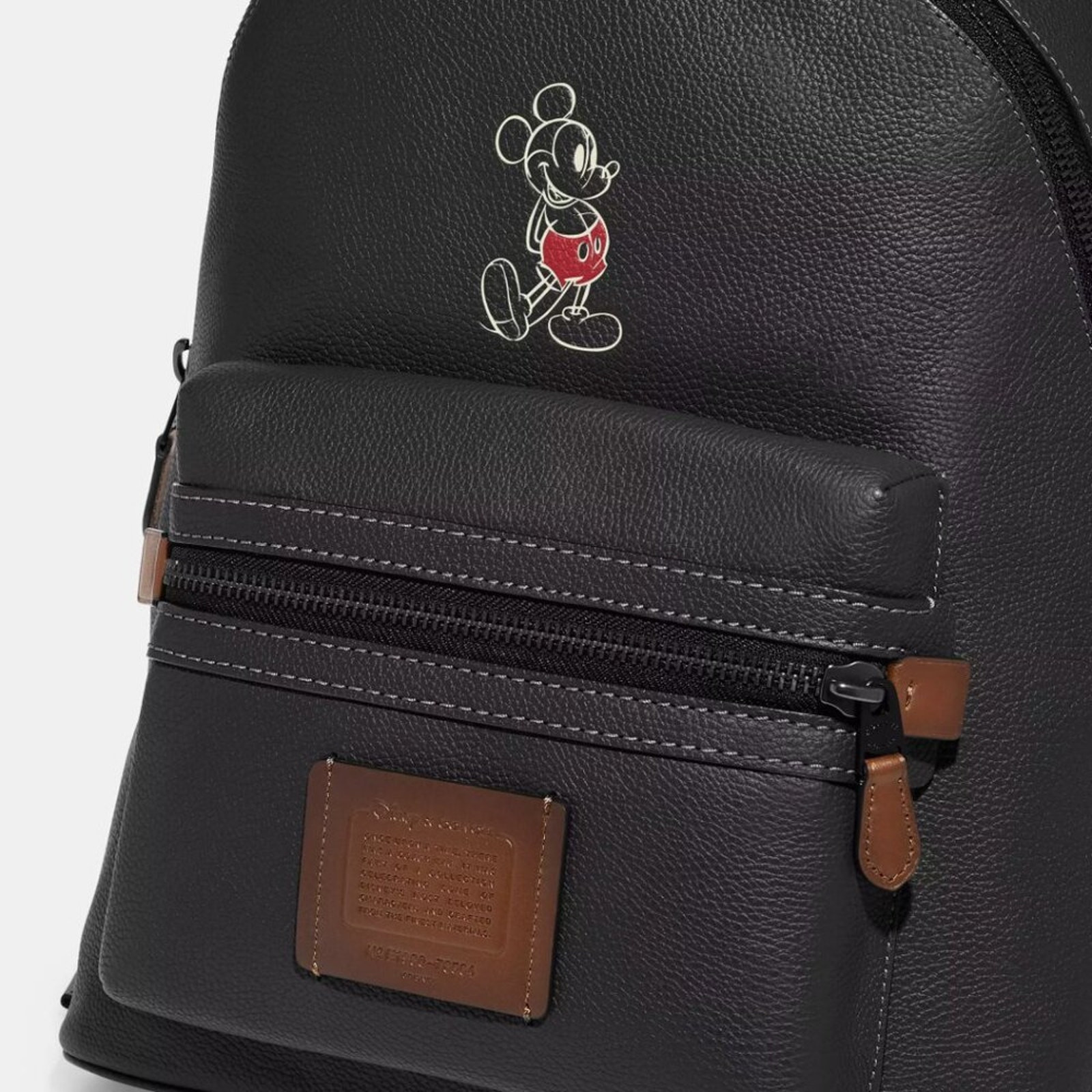Black Copper/Black Soft polished pebble leather and refined calf leather Inside zip, cell phone and multifunction pockets Inside tech sleeve with secure tab Two interior compartments Zip closure, fabric lining Outside zip pocket Adjustable shoulder straps Fits a 15" laptop 11 1/2" (L) x 15 3/4" (H) x 5 3/4" (W) Disney x Coach ©Disney Style No. 7856 Packaging may vary
