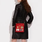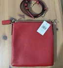 Polished pebble leather and smooth leatherInside open pocketZip-top closure, fabric liningOutside open pocketDetachable strap with 23" drop for shoulder or crossbody wearOrig. 2257 3/4" (L) x 8 1/4" (H) x 1" (W)Disney x Coach©DisneyStyle No. C8574Color: Brass/Electric Red