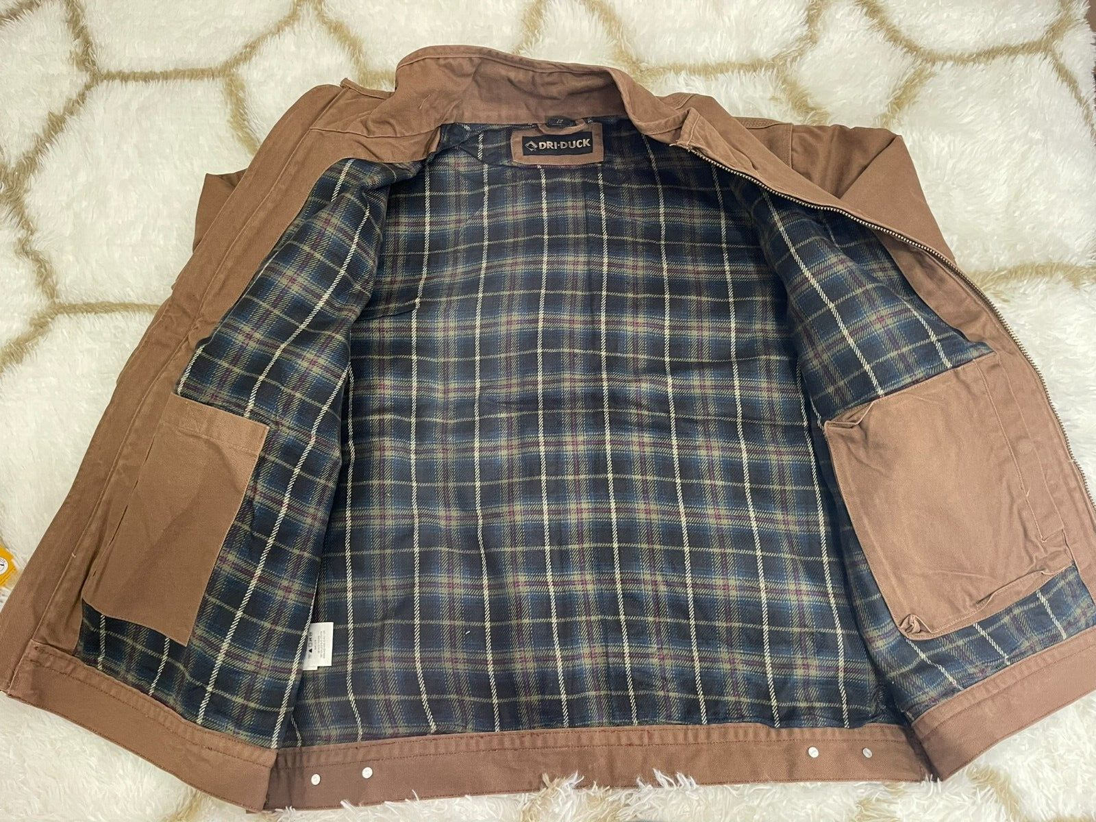 Brand new with tag, only open the bags to take pictures and measurement Men's Size XL All sales are final, pleae make sure it's the right size before ordering Fast shipping via UPS Ground Product Details 100% cotton, 12 oz. Boulder Cloth™ canvas, washed and peached for softness Acrylic yarn-dyed plaid blanket lining Diamond-quilted, 3 oz. polyfill insulated, nylon-lined sleeves for easy on and off Triple-needle stitching to reinforce high-stress areas Heavy-duty, YKK metal zipper with easy-grab pull Adjustable snap cuffs Adjustable button tab waistband Exterior hand pockets with snap closure Interior side-entry pocket with snap closure 9"Hx7.5"W Interior cell phone pocket with hook and loop closure - 8.5"Hx5"W Imported