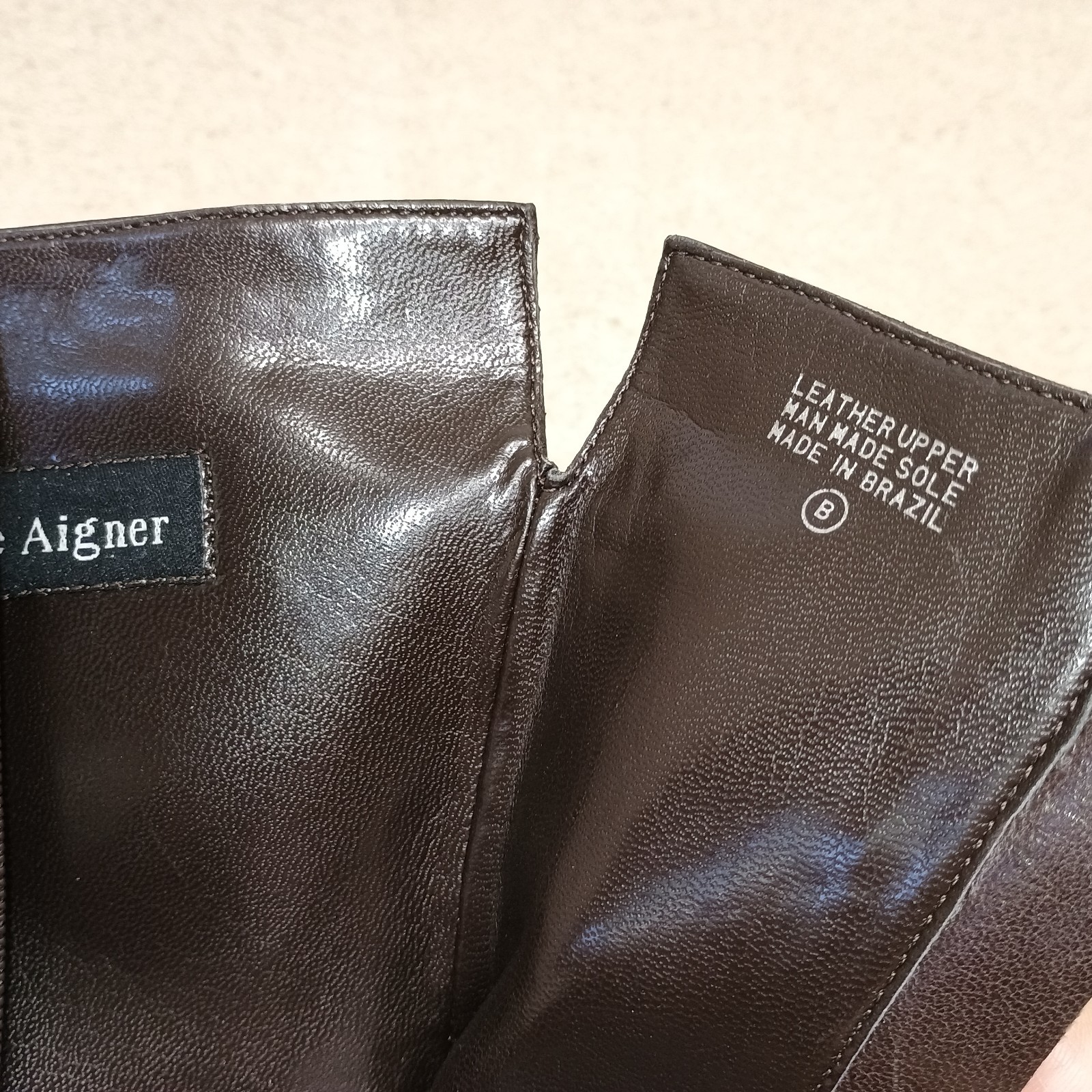 These NWT Etienne Aigner Rossie All Leather Tall Boots in size 9.5 are a stylish and classic addition to any woman's wardrobe. Made in Brazil, these brown zip boots feature a mid-calf shaft style with a solid pattern and a leather lining and insole. The riding boot design adds a touch of preppy sophistication, perfect for casual occasions in the fall, winter, or spring seasons. With a regular calf width and a medium shoe width, these boots by the renowned brand Etienne Aigner are sure to elevate any outfit with their timeless elegance and quality craftsmanship.