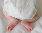 New arrival from boutique designer Feltman Brothers. White vintage inspired bloomer with lace and a shadow stitched bow & rose on the bum. Pull on elastic waist and lace trim at the legs. A wardrobe must! Size Newborn/3 months Google CLASSIC BABY BOUTIQUE TO FIND OUR SHOP WHERE WE OFFER FREE SHIPPING TO THE US EVERYDAY! Purchases made on our Ebay shop do not qualify for free shipping.
