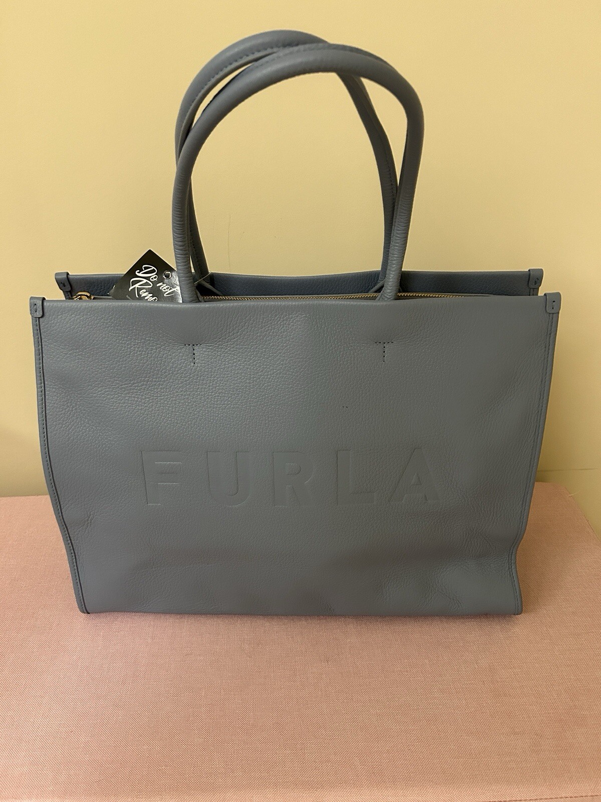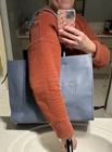 New with tag, Furla blue leather tote bag. Super roomy! Only call out is a tiny blemish on front (see photo). Dimensions: Width: 42.5cm, Height: 30.5cm, Depth: 16.5cm. 100% Calf Leather. Retails $879. - pebbled texture - panelled design - debossed logo to the front - two rolled top handles - metal feet - large main compartment - 2 internal pockets - internal logo patch - full lining - gold-tone hardware - top zip fastening