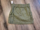 This is a new-with-tags girls' Old Navy olive green skirt in size 6-7. The skirt is made of 100% cotton with a solid pattern and features a cargo style with elastic waist and belt loops. It is suitable for casual occasions and has a hipster/school theme. The skirt is machine washable and has a short length, making it perfect for summer, fall, and spring seasons.
