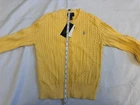 This NWT Girl's Size L (12-14) Polo Ralph Lauren Cotton Cable Cardigan in yellow is a stylish and classic sweater perfect for casual occasions. Made of 100% cotton with a knit fabric type, it features a crew neck and long sleeves with button closure. The cardigan is adorned with a logo accent, making it a versatile and timeless addition to any girl's wardrobe. Machine washable and suitable for winter, fall, and spring seasons, it offers both comfort and style for young fashionistas.