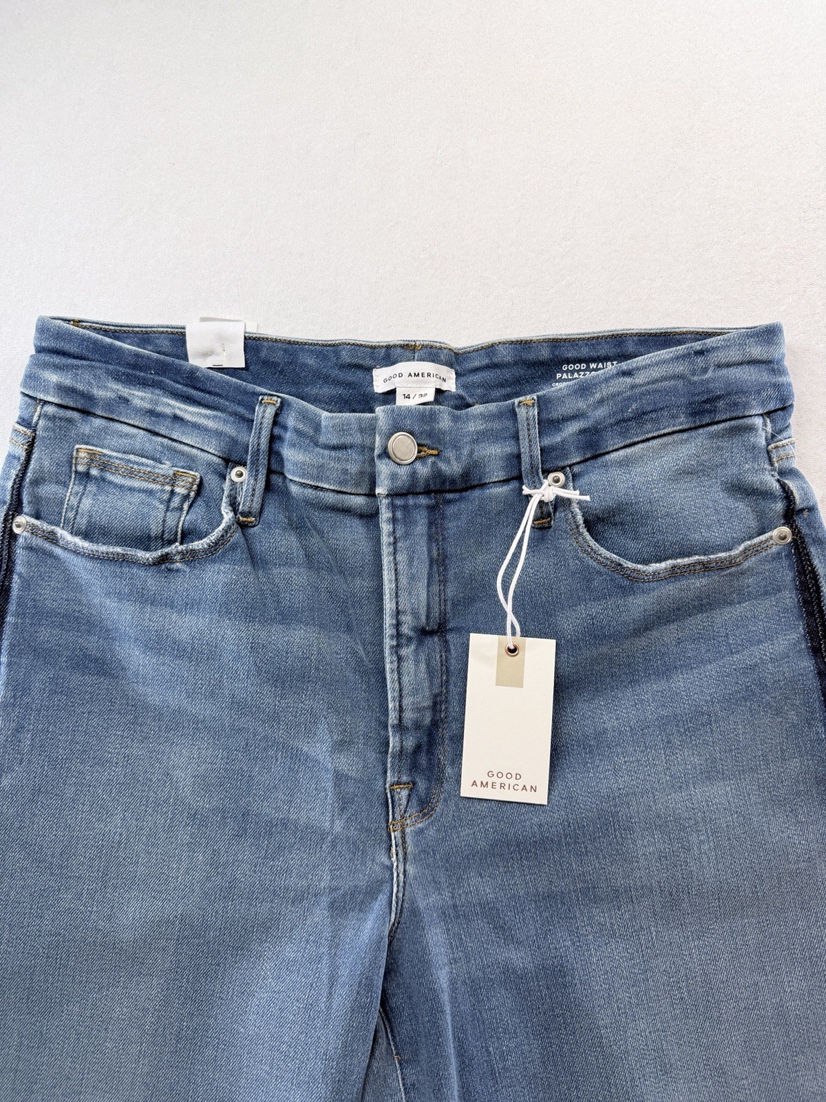 NWT Good American Women’s Jeans Good Waist Palazzo Crop Blue Size 14/32 Size 14/32 Material Cotton Color Blue Condition New Ref : 4046