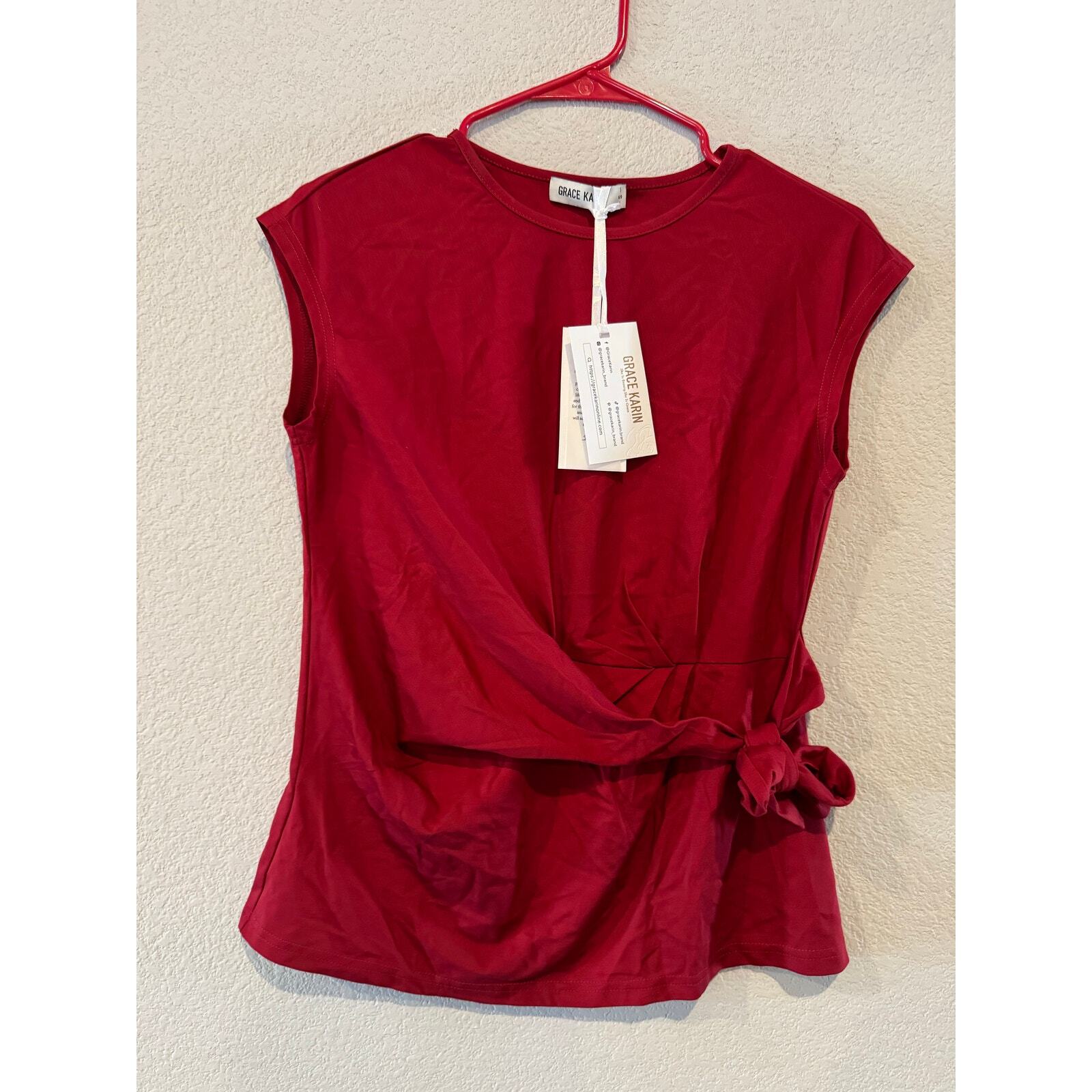 Add a touch of chic to your wardrobe with this Twisted Waist Round Neck Blouse Top in red. This stylish top features a unique twisted waist design that creates a flattering and eye-catching silhouette. The sleeveless design is perfect for warm weather or layering under jackets and cardigans. New with tags, this Grace Karin blouse is a must-have for any fashion-conscious woman. Measurements: Pit to pit 17" Condition: Overall in excellent used condition with no noticeable signs of use. It has been kept in a smoke-free and pet-free home with no unpleasant smell. Have questions? Leave a comment, and I’ll be happy to help! Enjoy fast shipping on all orders, and bundle more items to score huge discounts!