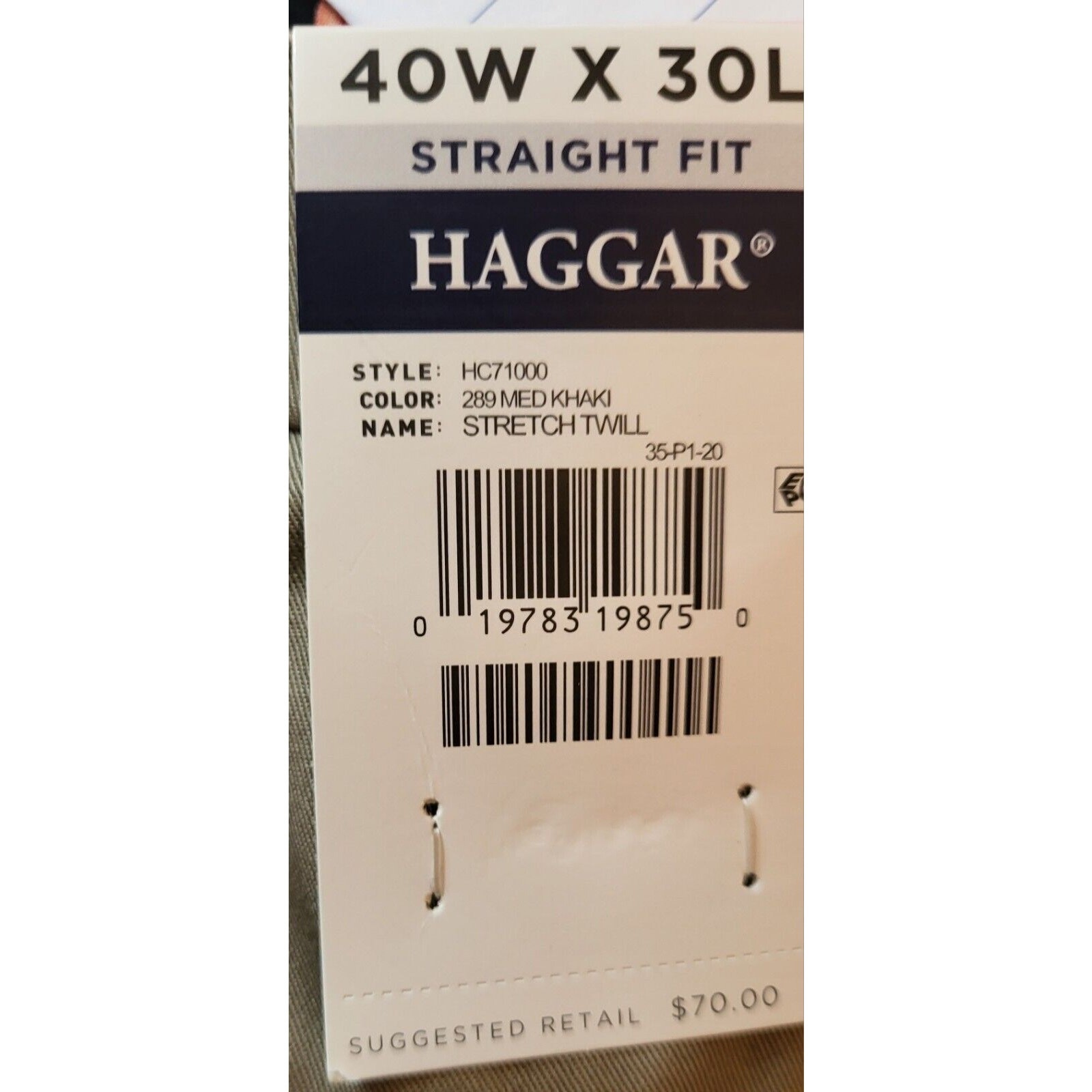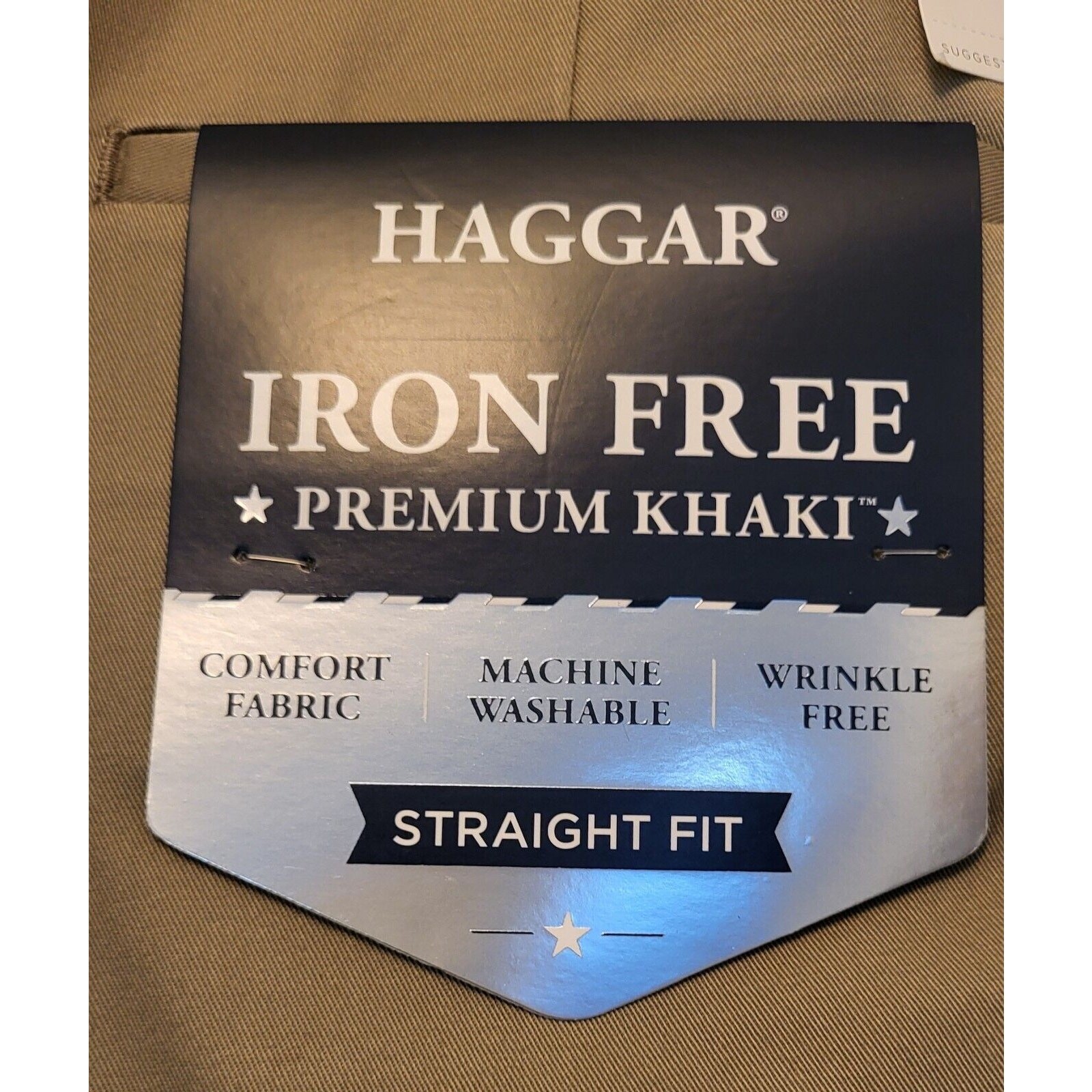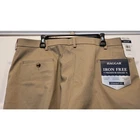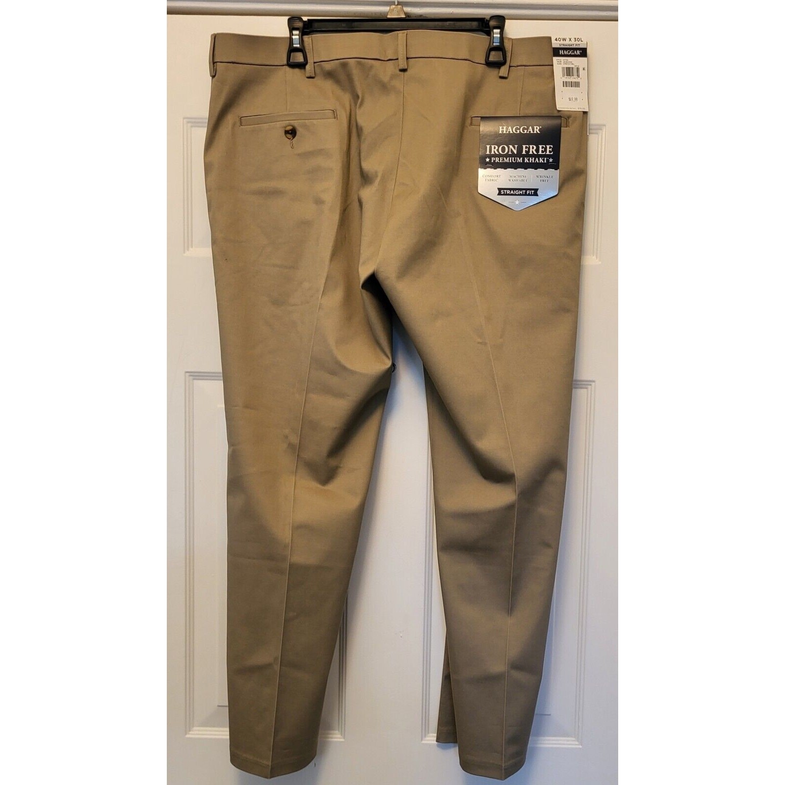 Elevate your wardrobe with these Haggar Premium khaki pants. The classic-fit and straight-leg style make them suitable for any occasion, whether it's a casual day out or a business meeting. The pants are made of comfortable cotton blend material that is easy to care for and wrinkle-resistant, ensuring you always look sharp. Featuring a flat front and mid-rise waist, these pants are designed for the modern man. The beige color and solid pattern add a touch of sophistication, while the zip and button closure provides a secure fit. Perfect for the traveler, these pants are a must-have addition to your wardrobe. Waist measures 40 in Inseam measures 30 in New with tags! Add them to your wardrobe today!