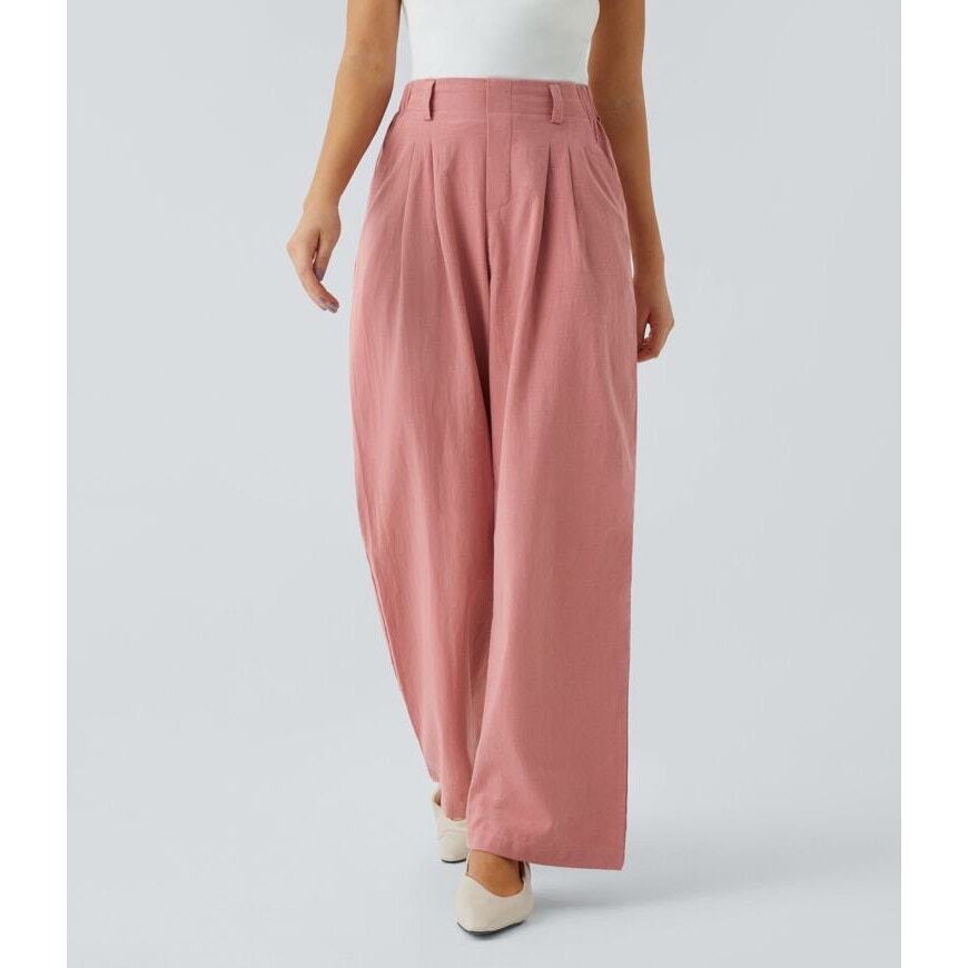 NWT Halara High Waisted Plicated Side Pocket Wide Leg Flowy Solid Palazzo Casual Linen-Feel Pants in 100% cotton, size Small. WLF 13.5' (+2 inches of stretch), rise 13.5', inseam 28 inches. No flaws. Excellent NEW condition, no flaws noted. Please don't hesitate to ask any further questions. Smoke free pet friendly home. Check out my other listings for a bundle deal! Wide Leg Natural Fibers 100% Cotton Capsule Palazzo