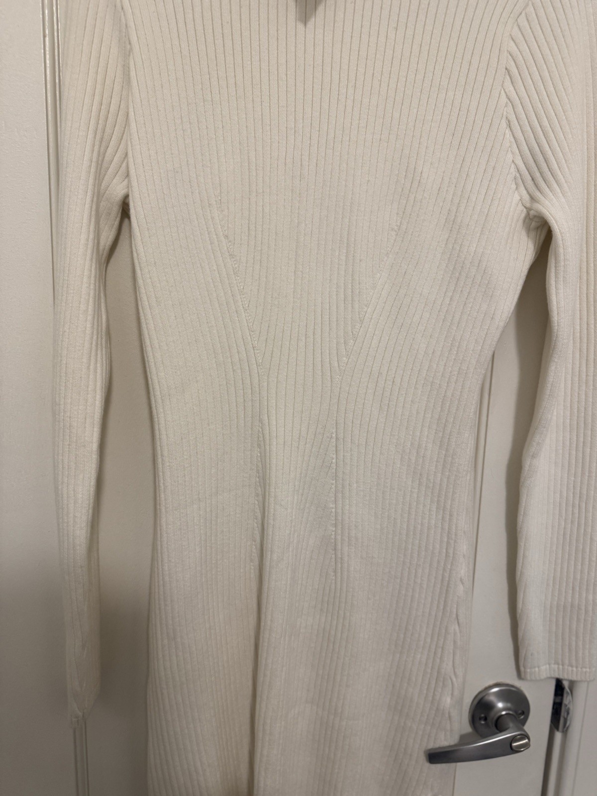 Embrace the effortless chic with the Hollister Ribbed Skater Mini Sweater Dress in a crisp Cloud White. Designed for the modern woman, this dress features a comfortable knit blend of cotton, nylon, and viscose, making it a cozy yet stylish choice for cooler days. The classic crew neck and long sleeves offer a timeless look, while the ribbed accents add a touch of texture and sophistication. Available in size XL, this sweater dress is perfect for a variety of occasions, from casual outings to cocktail parties, or even travel adventures. Its short dress length is versatile for both casual and dressy events. The solid white color makes it an easy match with your favorite accessories and footwear, ensuring you stand out in any crowd with a classic, holiday-inspired ensemble.