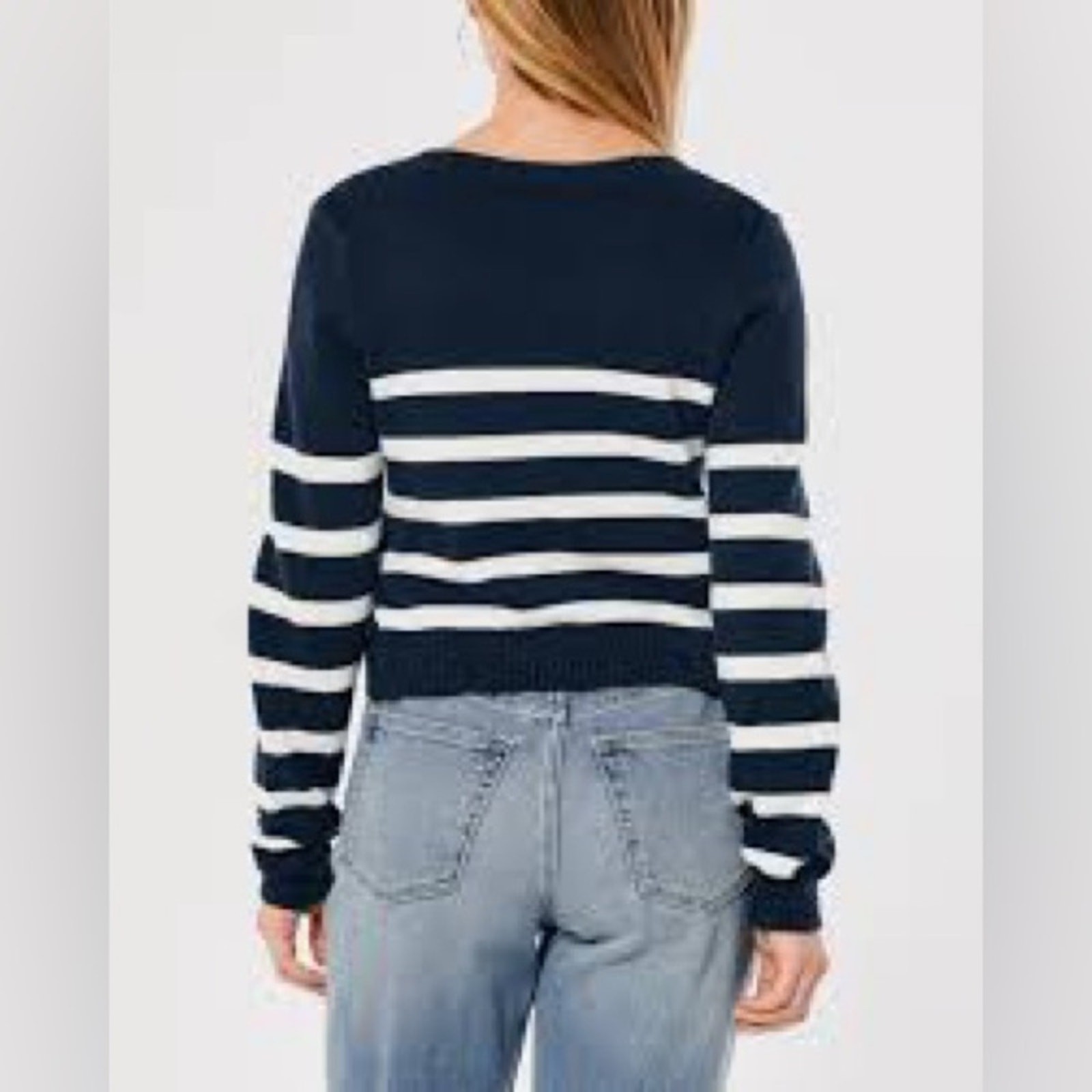 NWT Hollister V-neck Knit Stripe Sweater Size XL Color: Navy Blue & White Brand new with tags V-neck Long sleeve Striped Knit Crop, Cropped Approximate measurements laying flat Bust 20.5” Length 19”
