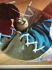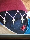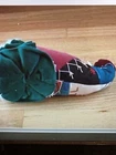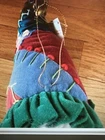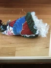 NWT House of Hatten Judie Tasch Santa Patchwork Ornament. Handcrafted. Wood or wooden-like Santa face. Velvet patchwork Santa hat with embroidered details and bell. Soft Santa beard and hair. Excellent condition. No known flaws.Approximate measurement:Side length from bell to beard 9"width 4"