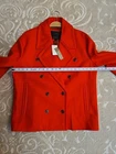 This NWT J.Crew Women's Double Breasted Wool Melton Peacoat in size 6 is a classic and stylish outerwear piece perfect for the winter and fall seasons. Made from 80% wool and 20% nylon with a polyester lining, this mid-length coat features a solid red color, long sleeves, and a button closure. Ideal for travel, casual, and business occasions, this pea coat with a collared neckline and lined interior exudes an Italian and classic theme. Designed by J.Crew, this coat is sure to add a touch of sophistication to any wardrobe. New with tags Never worn Tiny black dots Not noticeable Shell : 80% Wool, 20% Nylon Dry Clean High-quality Well made Please see photos for measurements and details :)