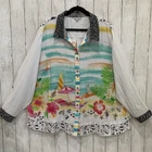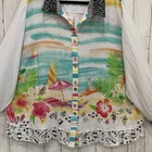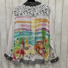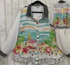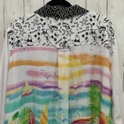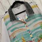 New with tags MSRP $ 119 80% rayon, 20% nylon Woven fabrication Point collar neckline Long roll-tab sleeves Beach scene print Loose fit Hi-low shirt tail Button front closure Pit to pit 28.5’’ approx, shoulder to bottom 29.5’’ Rayon/nylon Machine wash; cold/tumble dry Please let me know if you have any questions Thank you Bin 12