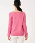 Lola Sequin Sweater Straight fit, long sleeve, boatneck sweater with rhinestone buttons at each cuff. 24 1/2" in length (based on a size small/4). Fits against body at chest and hip with more room at the waist. Imported. SKU: 020703 Fluffy Sequin (60% Acrylic, 36% Polyester, 4% Lycra). Hand wash cold, separately, or dry clean.